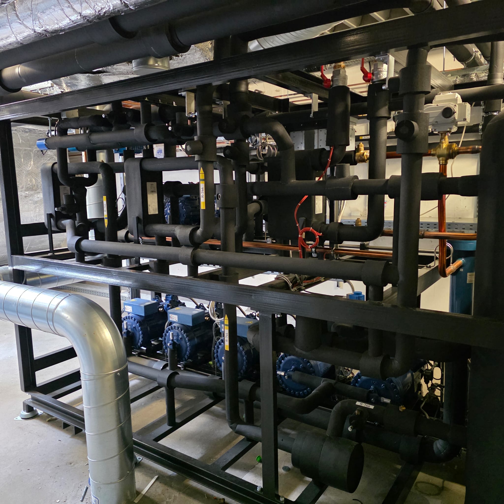 — transkritische CO2 Verbundanlage für Normal- und Tiefkühlung inkl. Ejektorfunktion, Wärmerückgewinnung & Ansteuerung WP-Verdampfer