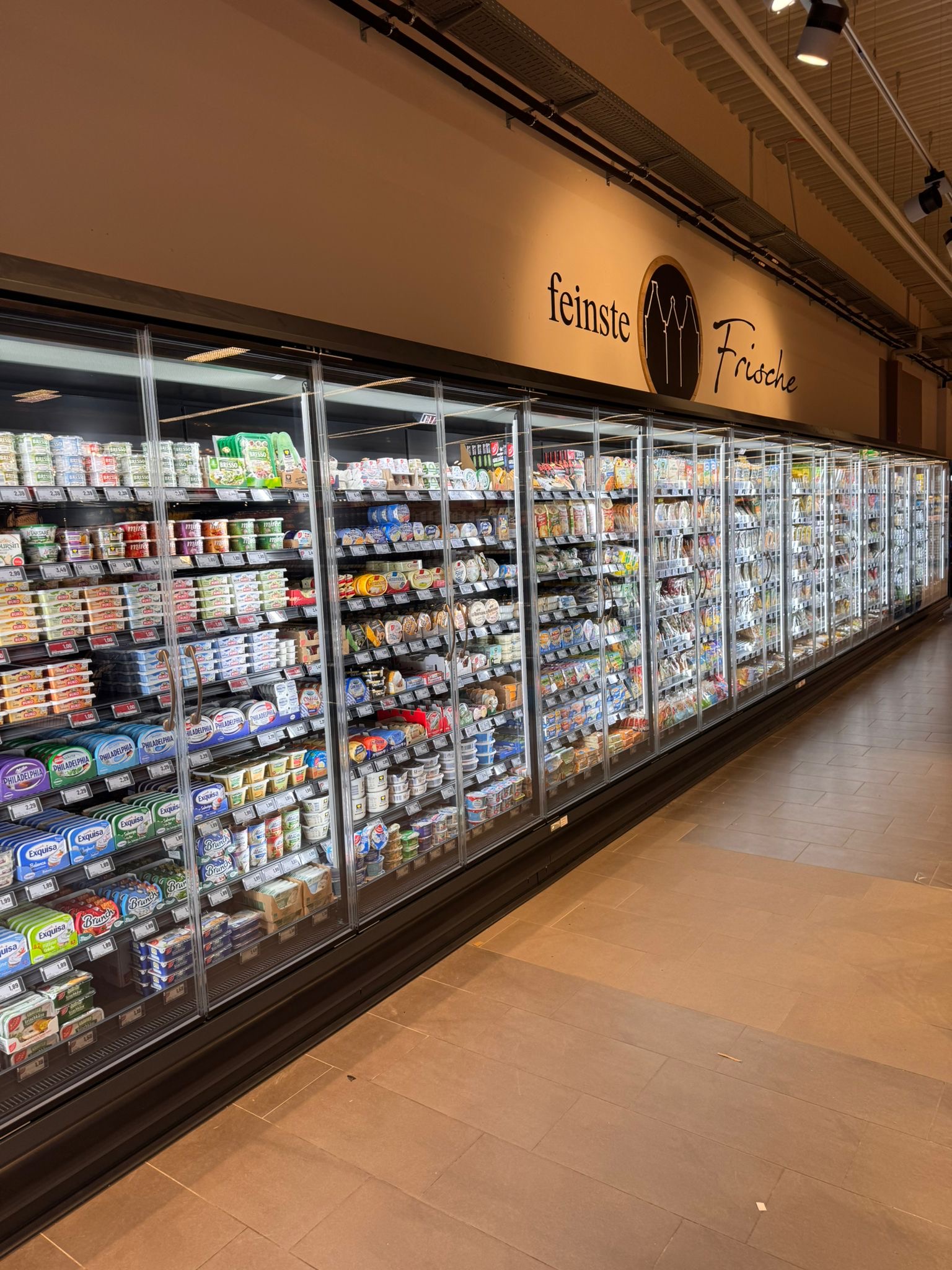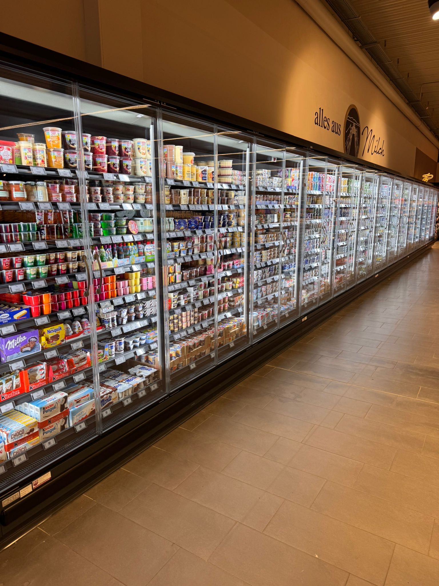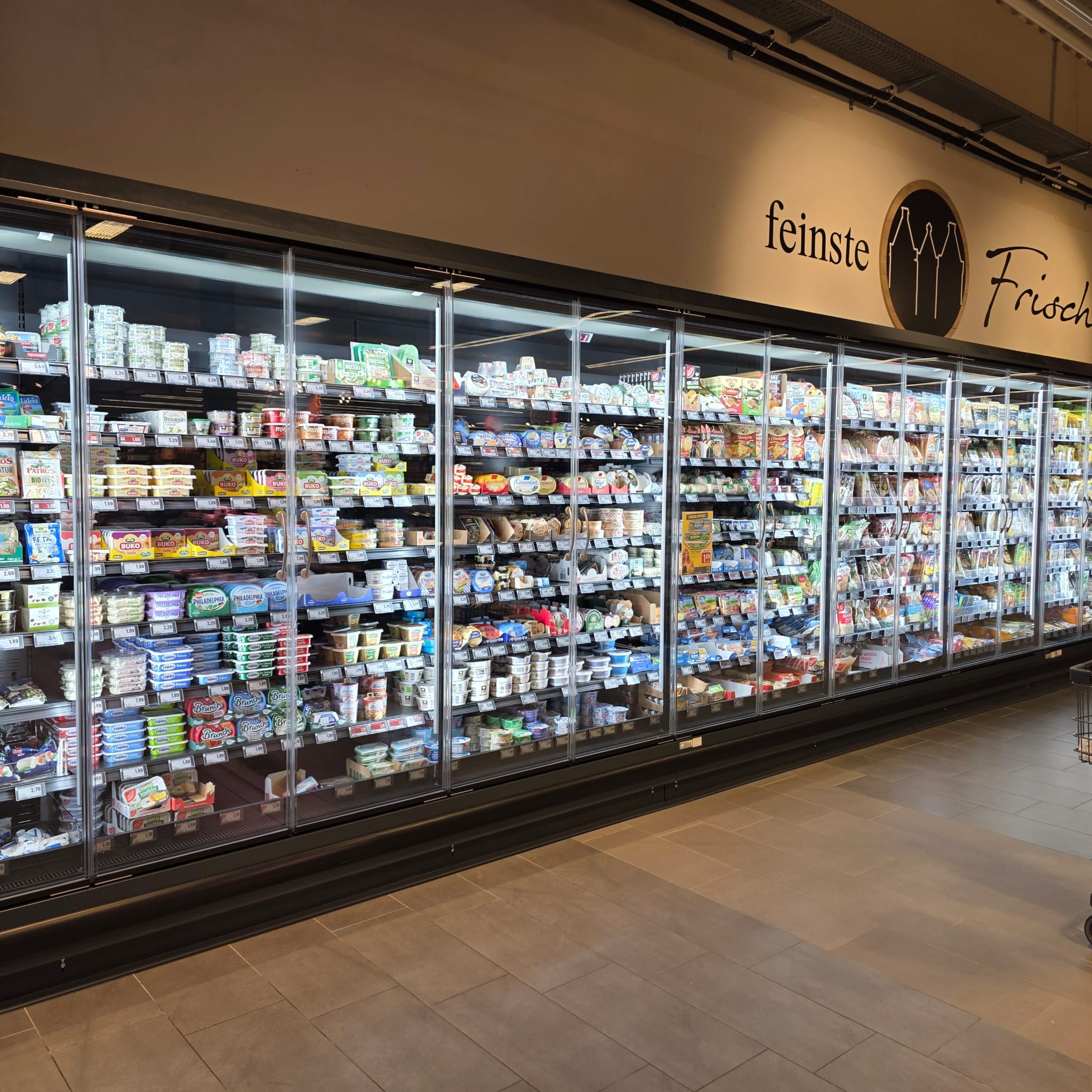 – 15,00 Meter Molkereiprodukte-Wandkühlregal mit thermopaner Verglasung