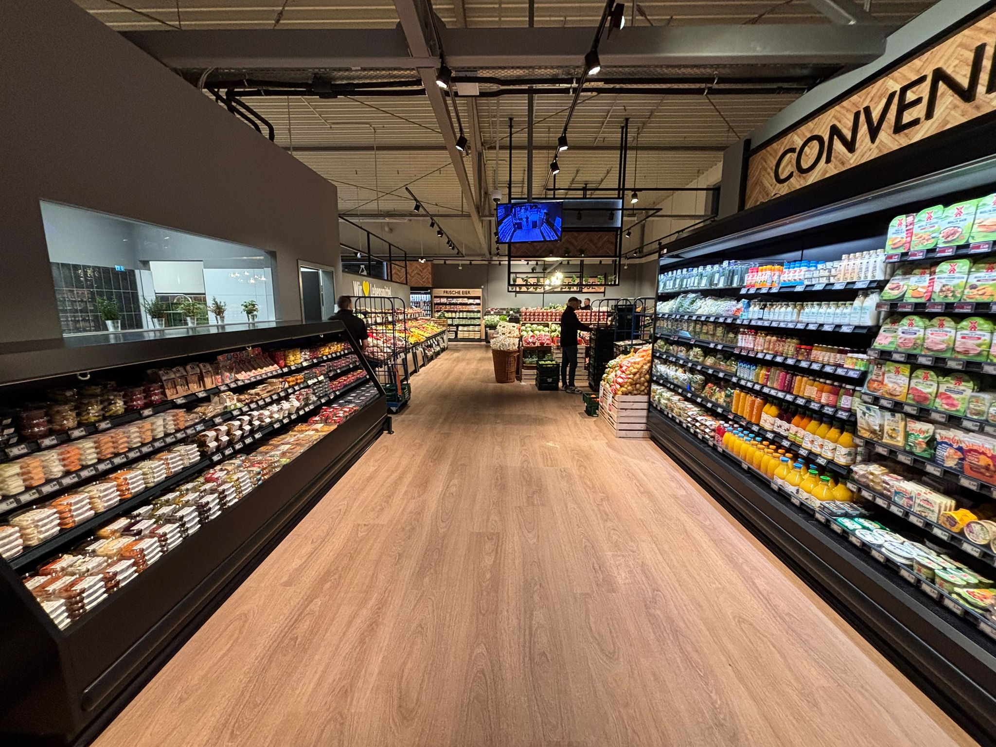 Auch bei diesem Markt mit einer Verkaufsfläche von fast 1.100 m² wurde nach den neuesten ökonomischen und ökologischen Gesichtspunkten der Markt konzipiert und gebaut, so dass z.B. als Kälteträger das natürliche und umweltschonende CO2 eingesetzt wurde, die Wandkühlregale wurden mit LED-Beleuchtung und ausgestattetund Tiefkühlinseln, mit Glastüren oder Schiebescheiben versehen und alle Kühlmöbel wurden mit LED-Beleuchtung ausgestattet